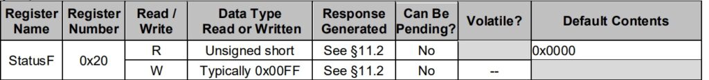 The first byte contains the checksum (first 4 bits) and status information. The second byte contains the register address and the third and fourth byte contains the data read.