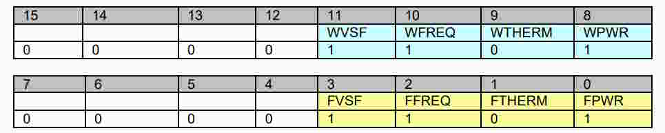 Provides the elements in the status registers that trigger the alarm flag. Allows writing the triggers.